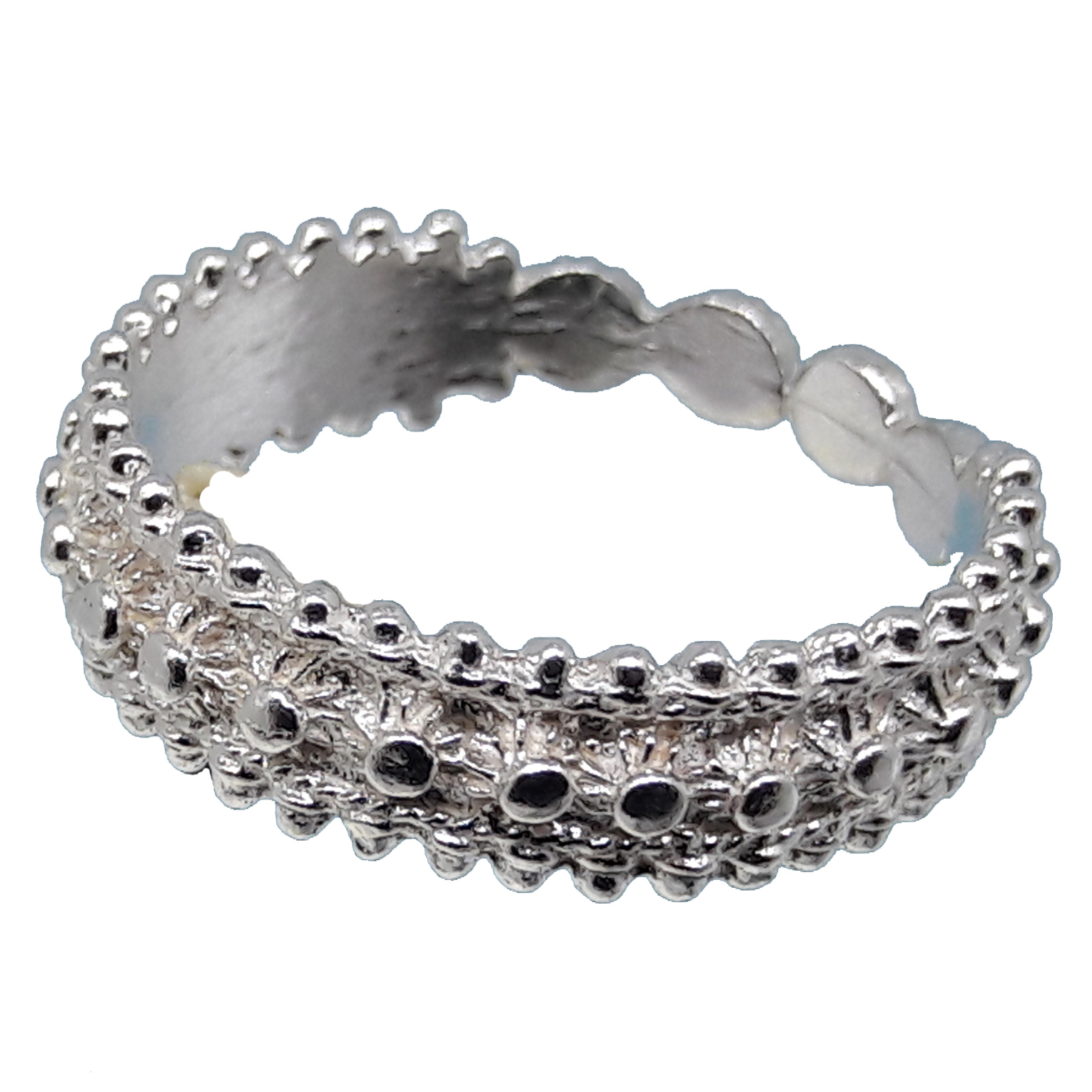 Los anillos de panal generalmente se crean con solo el entrelazado de hilos y puntos, mientras que aquellos con folletos como el nombre en sí tienen folletos para embellecer la figura.