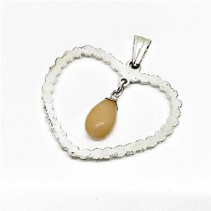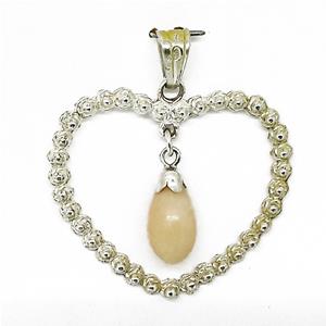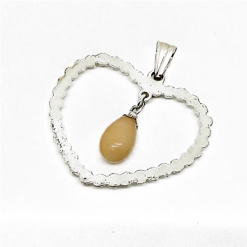 El Coral Pendant Pink Coral Drop and Silver Filigree Heart Frame