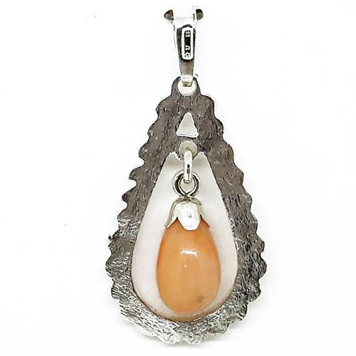 El Coral Pendant Pink Coral Drop and Silver Filigree Drop FrameEl Coral Pendant Pink Coral Drop and Silver Filigree Drop Frame