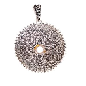 Burnished Silver filigree pendant in the shape of a corbula with a border of dots. A beautiful pendant that our artisans wanted to create exclusively for you.
