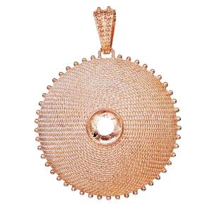 Pink Silver filigree pendant in the shape of a corbula with a border of dots. A beautiful pendant that our artisans wanted to create exclusively for you.