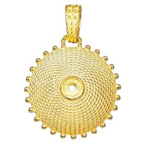 Silver Golden filigree pendant in the shape of a corbula with a border of dots. A beautiful pendant that our artisans wanted to create exclusively for you.