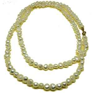El Coral Necklace White Baroque Button Pearls 8mm, 100cm Length, Golden Clasp