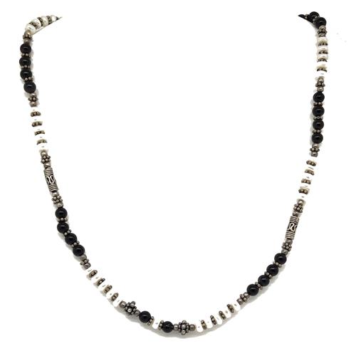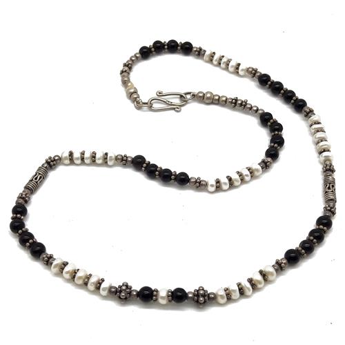 El Coral Collana Agata Nera e Perle da 5mm. con Tramezzi e Chiusura in Argento, disegno etnico e originale per un vestire in maniera informale.