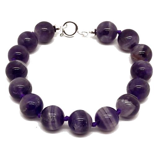 El Coral Bracciale Ametista Pallini 10mm. Annodato Lunghezza 19cm. Chiusura Argentata Peso 22gr. classico e molto bello si indossa praticamente su tutto.