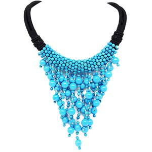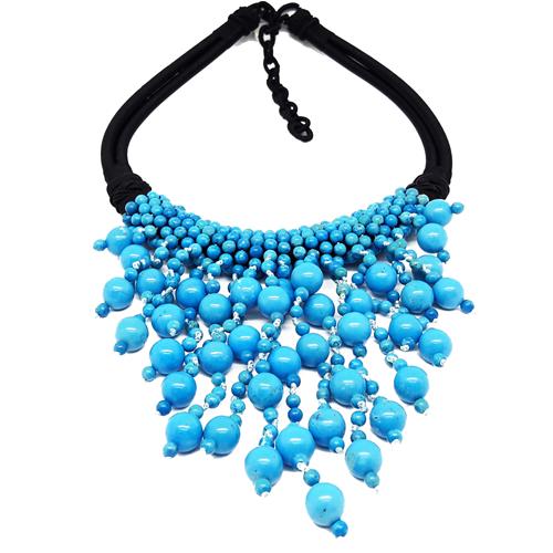 El Coral Collana Turchese Pallini da 4 e 10mm. Pendenti a Grappolo Scalare con Collare 2 Fili in Seta Lunghezza 43cm. Chiusura Regolabile, disegno veramente originale per un gioiello unico che devi possedere.