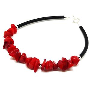 Coralli di Sardegna Pulsera Coral Rojo Chips, Caucho y Muelle de Acero