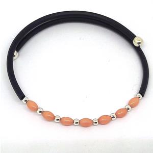 El Coral Pulsera Coral Rosa Oliva 3x5 mm, Caucho y Muelle de Acero