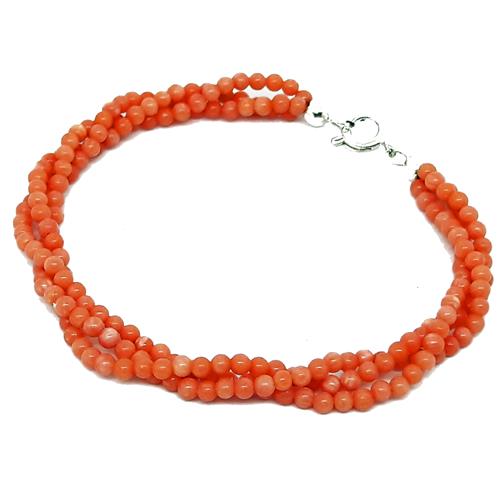 El Coral Pulsera Triple Coral Rosa Puntas y Cierre Plateado