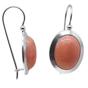 El Coral Pendientes Coral Rosa Cabujón 12x16 mm y Plata
