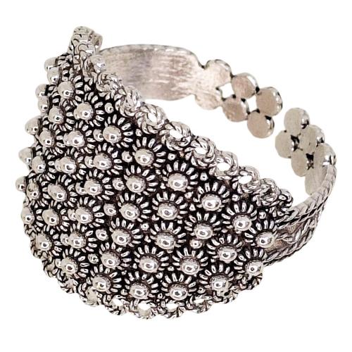 | Anillo ovalado grande con círculos perforados en plata. | |