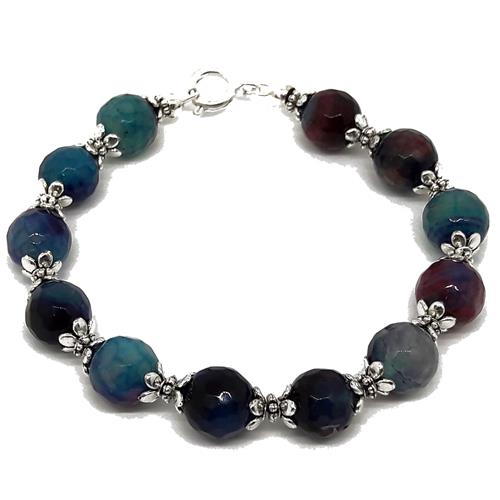 El Coral Bracciale Agata Rainbow Pallini Sfaccettati da 10mm. Con Elementi e Chiusura Argentati lunghezza 19cm. disegno di sapore antico per un gioiello attualissimo.