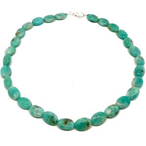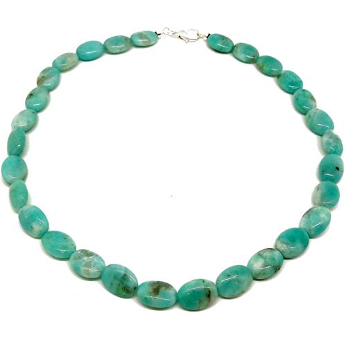 El Coral Collana in Amazzonite Ovali Piatti da 10x14mm. Con Chiusura Argentata Lunghezza 42cm. sportiva ed elegante bellissimo colore la terrai sempre indossata.
