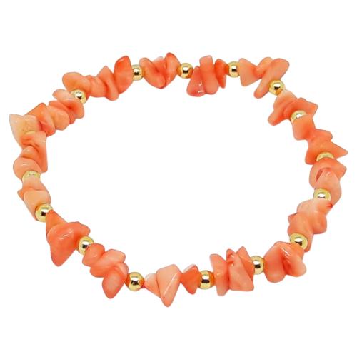 El Coral Bracciale Corallo Rosa Chips 6/8mm. Pallini Dorati Elastico