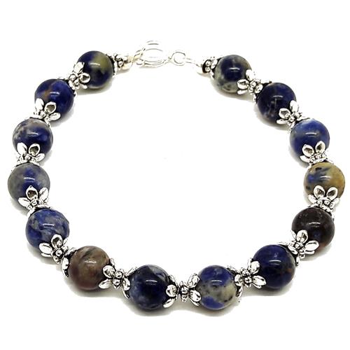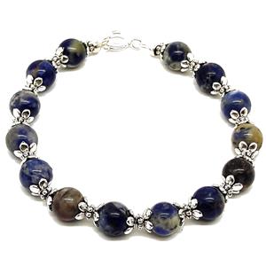 El Coral Bracciale Sodalite Blù/Rossa da 8mm. Lunghezza 19cm. con Elementi e Chiusura Argentata con un bel disegno di altri tempi ungioiello da portare in ogni occasione.