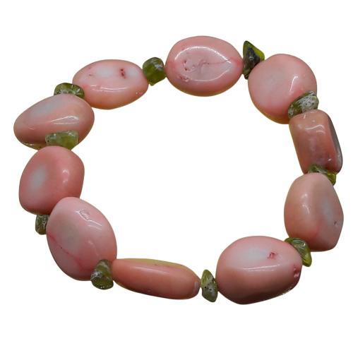 El Coral Bracciale Corallo Rosa Sassi 10/16mm. Olivina Chips 4/6mm. Elastico