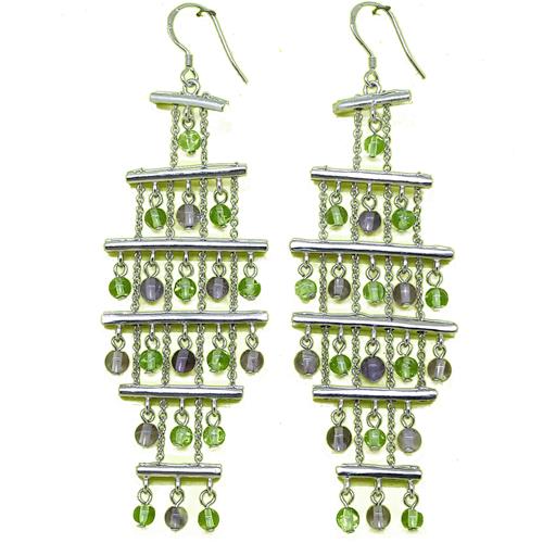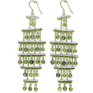 El Coral Orecchini Ametista e Olivina in Argento a Scaletta con Barrette e Catena