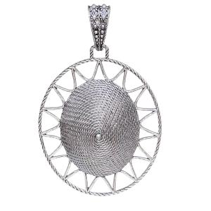 | Ciondolo in Filigrana in Argento Brunito a forma di Corbula ovale con bordo traforato | |
