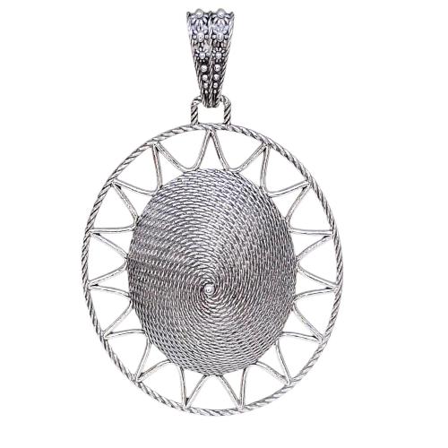 Ciondolo di filigrana in Argento Brunito a forma di corbula ovale con bordo traforato. Un bellissimo ciondolo che i nostri artigiani hanno voluto creare esclusivamente per te.