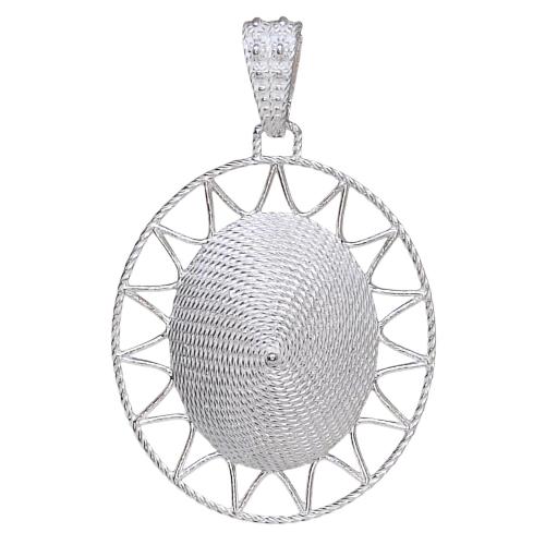 Ciondolo di filigrana in Argento a forma di corbula ovale con bordo traforato. Un bellissimo ciondolo che i nostri artigiani hanno voluto creare esclusivamente per te.