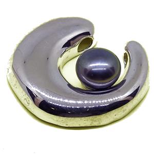 El Coral Ciondolo Perla Grigia mezzo Foro da 8mm. Montatura in Argento forma di Goccia Circolare da 27mm. adatto a catene, cordoncino ed anche caucciù.